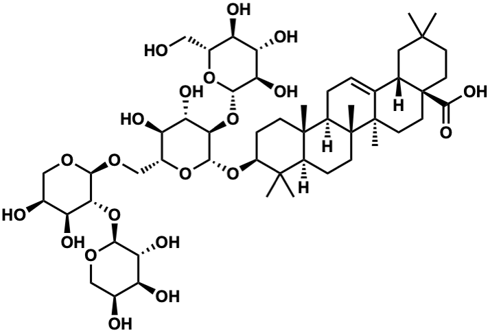 InChI=1S/C52H84O21/c1-47(2)14-16-52(46(64)65)17-15-50(6)23(24(52)18-47)8-9-30-49(5)12-11-31(48(3,4)29(49)10-13-51(30,50)7)71-45-41(73-43-39(63)36(60)34(58)27(19-53)69-43)37(61)35(59)28(70-45)22-68-44-40(33(57)26(55)21-67-44)72-42-38(62)32(56)25(54)20-66-42/h8,24-45,53-63H,9-22H2,1-7H3,(H,64,65)/t24-,25-,26-,27+,28+,29-,30+,31-,32-,33-,34+,35+,36-,37-,38+,39+,40+,41+,42-,43-,44-,45-,49-,50+,51+,52-/m0/s1 |