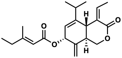 C=C1[C@H](OC(=O)/C=C(C)CC)C=C(C(C)C)[C@@H]2/C(=C/C)C(=O)OC[C@@H]12 |