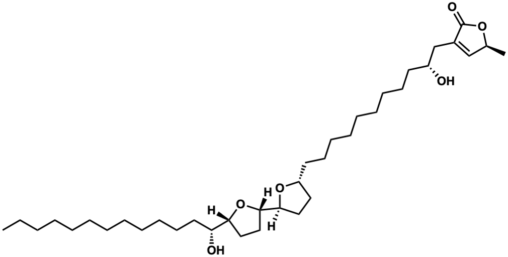 InChI=1S/C37H66O6/c1-3-4-5-6-7-8-9-13-16-19-22-33(39)34-25-26-36(43-34)35-24-23-32(42-35)21-18-15-12-10-11-14-17-20-31(38)28-30-27-29(2)41-37(30)40/h27,29,31-36,38-39H,3-26,28H2,1-2H3/t29-,31+,32+,33+,34+,35-,36-/m0/s1 |