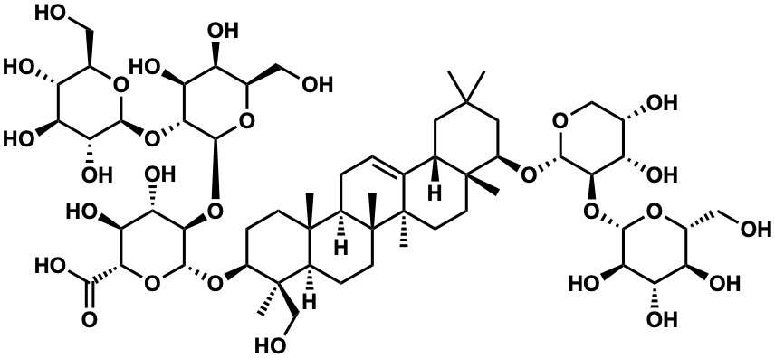 InChI=1S/C59H96O28/c1-54(2)16-24-23-8-9-30-56(4)12-11-31(82-53-47(41(73)40(72)44(84-53)48(76)77)87-52-46(39(71)36(68)28(20-62)81-52)86-50-43(75)38(70)35(67)27(19-61)80-50)57(5,22-63)29(56)10-13-59(30,7)58(23,6)15-14-55(24,3)32(17-54)83-51-45(33(65)25(64)21-78-51)85-49-42(74)37(69)34(66)26(18-60)79-49/h8,24-47,49-53,60-75H,9-22H2,1-7H3,(H,76,77)/t24-,25-,26+,27+,28+,29+,30+,31-,32+,33-,34+,35+,36-,37-,38-,39-,40-,41-,42+,43+,44-,45+,46+,47+,49-,50-,51-,52-,53+,55+,56-,57+,58+,59+/m0/s1 |