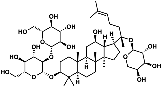 InChI=1S/C47H80O17/c1-22(2)10-9-14-47(8,64-40-37(57)32(52)25(51)21-59-40)23-11-16-46(7)31(23)24(50)18-29-44(5)15-13-30(43(3,4)28(44)12-17-45(29,46)6)62-42-39(36(56)34(54)27(20-49)61-42)63-41-38(58)35(55)33(53)26(19-48)60-41/h10,23-42,48-58H,9,11-21H2,1-8H3/t23-,24+,25-,26+,27+,28-,29+,30-,31-,32-,33+,34+,35-,36-,37+,38+,39+,40-,41-,42-,44-,45+,46+,47-/m0/s1 |