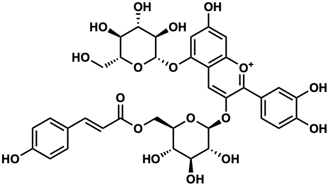 InChI=1S/C36H36O18/c37-13-25-28(43)30(45)32(47)35(53-25)51-23-11-18(39)10-22-19(23)12-24(34(50-22)16-4-7-20(40)21(41)9-16)52-36-33(48)31(46)29(44)26(54-36)14-49-27(42)8-3-15-1-5-17(38)6-2-15/h1-12,25-26,28-33,35-37,43-48H,13-14H2,(H3-,38,39,40,41,42)/p+1/t25-,26-,28-,29-,30+,31+,32-,33-,35-,36-/m1/s1 |