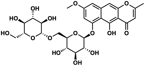 InChI=1S/C27H32O15/c1-9-3-12(29)18-13(39-9)5-10-4-11(37-2)6-14(17(10)21(18)32)40-27-25(36)23(34)20(31)16(42-27)8-38-26-24(35)22(33)19(30)15(7-28)41-26/h3-6,15-16,19-20,22-28,30-36H,7-8H2,1-2H3/t15-,16-,19-,20-,22+,23+,24-,25-,26-,27-/m1/s1 |