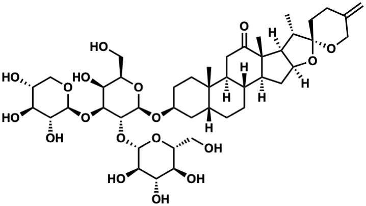 InChI=1S/C44H68O18/c1-18-7-10-44(56-16-18)19(2)30-26(62-44)12-24-22-6-5-20-11-21(8-9-42(20,3)23(22)13-29(48)43(24,30)4)57-41-38(61-40-36(54)34(52)32(50)27(14-45)58-40)37(33(51)28(15-46)59-41)60-39-35(53)31(49)25(47)17-55-39/h19-28,30-41,45-47,49-54H,1,5-17H2,2-4H3/t19-,20+,21-,22+,23-,24-,25+,26-,27+,28+,30-,31-,32+,33-,34-,35+,36+,37-,38+,39-,40-,41+,42-,43+,44+/m0/s1 |