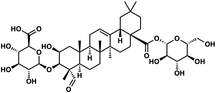 InChI=1S/C42H64O16/c1-37(2)11-13-42(36(54)58-34-29(50)26(47)25(46)22(17-43)55-34)14-12-40(5)19(20(42)15-37)7-8-24-38(3)16-21(45)32(39(4,18-44)23(38)9-10-41(24,40)6)57-35-30(51)27(48)28(49)31(56-35)33(52)53/h7,18,20-32,34-35,43,45-51H,8-17H2,1-6H3,(H,52,53)/t20-,21-,22+,23+,24+,25+,26-,27-,28-,29+,30+,31-,32-,34-,35-,38-,39-,40+,41+,42-/m0/s1 |