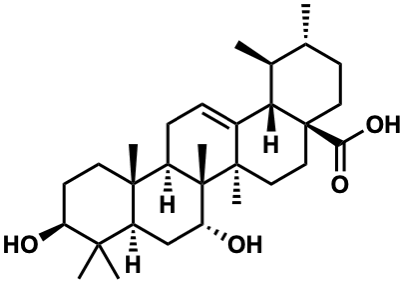 InChI=1S/C30H48O4/c1-17-10-13-30(25(33)34)15-14-28(6)19(24(30)18(17)2)8-9-20-27(5)12-11-22(31)26(3,4)21(27)16-23(32)29(20,28)7/h8,17-18,20-24,31-32H,9-16H2,1-7H3,(H,33,34)/t17-,18+,20-,21+,22+,23-,24+,27-,28-,29+,30+/m1/s1 |