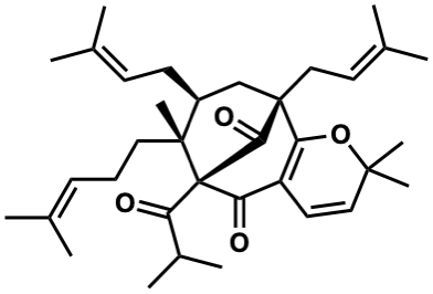 CC(C)=CCC[C@]1(C)[C@@H](CC=C(C)C)C[C@@]2(CC=C(C)C)C(=O)[C@]1(C(=O)C(C)C)C(=O)C1=C2OC(C)(C)C=C1 |