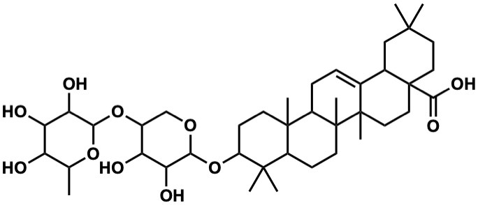 InChI=1S/C41H66O11/c1-21-28(42)30(44)32(46)34(50-21)51-24-20-49-33(31(45)29(24)43)52-27-12-13-38(6)25(37(27,4)5)11-14-40(8)26(38)10-9-22-23-19-36(2,3)15-17-41(23,35(47)48)18-16-39(22,40)7/h9,21,23-34,42-46H,10-20H2,1-8H3,(H,47,48) |
