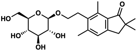InChI=1S/C21H30O7/c1-10-7-12-8-21(3,4)19(26)15(12)11(2)13(10)5-6-27-20-18(25)17(24)16(23)14(9-22)28-20/h7,14,16-18,20,22-25H,5-6,8-9H2,1-4H3/t14-,16-,17+,18-,20-/m1/s1 |