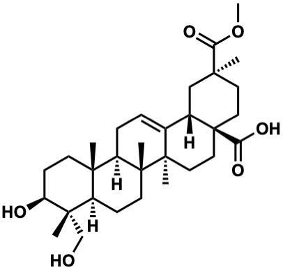 InChI=1S/C31H48O6/c1-26(25(36)37-6)13-15-31(24(34)35)16-14-29(4)19(20(31)17-26)7-8-22-27(2)11-10-23(33)28(3,18-32)21(27)9-12-30(22,29)5/h7,20-23,32-33H,8-18H2,1-6H3,(H,34,35)/t20-,21+,22+,23-,26-,27-,28-,29+,30+,31-/m0/s1 |