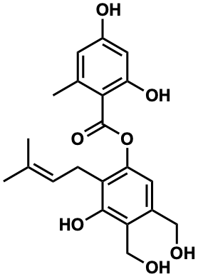 CC(C)=CCc1c(OC(=O)c2c(C)cc(O)cc2O)cc(CO)c(CO)c1O |