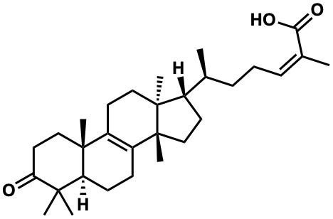 InChI=1S/C30H46O3/c1-19(9-8-10-20(2)26(32)33)21-13-17-30(7)23-11-12-24-27(3,4)25(31)15-16-28(24,5)22(23)14-18-29(21,30)6/h10,19,21,24H,8-9,11-18H2,1-7H3,(H,32,33)/b20-10-/t19-,21-,24-,28+,29-,30+/m0/s1 |