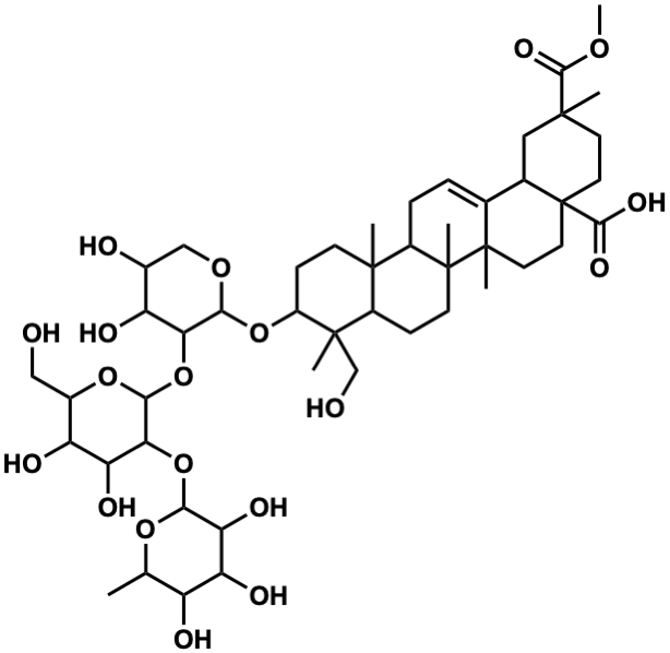 InChI=1S/C48H76O19/c1-22-30(52)33(55)35(57)38(63-22)66-37-34(56)32(54)26(19-49)64-40(37)67-36-31(53)25(51)20-62-39(36)65-29-11-12-44(3)27(45(29,4)21-50)10-13-47(6)28(44)9-8-23-24-18-43(2,42(60)61-7)14-16-48(24,41(58)59)17-15-46(23,47)5/h8,22,24-40,49-57H,9-21H2,1-7H3,(H,58,59) |