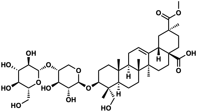 InChI=1S/C42H66O15/c1-37(36(52)53-6)13-15-42(35(50)51)16-14-40(4)21(22(42)17-37)7-8-26-38(2)11-10-27(39(3,20-44)25(38)9-12-41(26,40)5)57-33-31(48)29(46)24(19-54-33)56-34-32(49)30(47)28(45)23(18-43)55-34/h7,22-34,43-49H,8-20H2,1-6H3,(H,50,51)/t22-,23+,24+,25+,26+,27-,28+,29-,30-,31+,32+,33-,34-,37-,38-,39-,40+,41+,42-/m0/s1 |