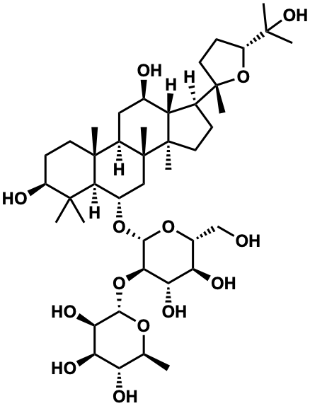 InChI=1S/C42H72O14/c1-19-28(46)30(48)32(50)35(52-19)55-33-31(49)29(47)23(18-43)54-36(33)53-22-17-41(8)24(39(6)13-11-25(45)37(2,3)34(22)39)16-21(44)27-20(10-14-40(27,41)7)42(9)15-12-26(56-42)38(4,5)51/h19-36,43-51H,10-18H2,1-9H3/t19-,20-,21+,22-,23+,24+,25-,26+,27-,28-,29+,30+,31-,32+,33+,34-,35-,36+,39+,40+,41+,42-/m0/s1 |