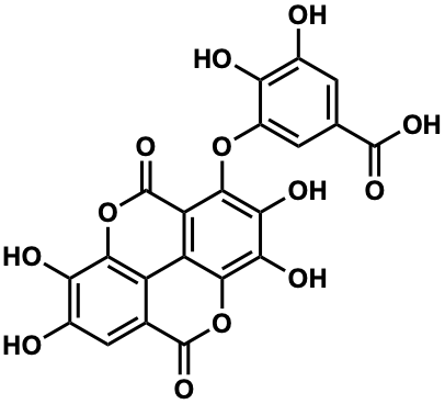 O=C(O)c1cc(O)c(O)c(Oc2c(O)c(O)c3oc(=O)c4cc(O)c(O)c5oc(=O)c2c3c54)c1 |