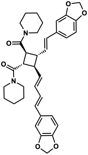 O=C([C@H]1[C@H](/C=C/C=C/c2ccc3c(c2)OCO3)[C@@H](/C=C/c2ccc3c(c2)OCO3)[C@@H]1C(=O)N1CCCCC1)N1CCCCC1 |