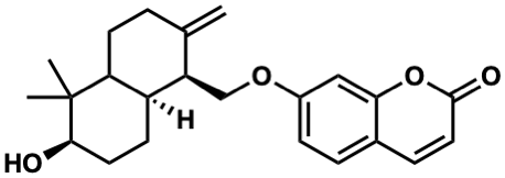 InChI=1S/C23H28O4/c1-14-4-9-19-17(8-10-21(24)23(19,2)3)18(14)13-26-16-7-5-15-6-11-22(25)27-20(15)12-16/h5-7,11-12,17-19,21,24H,1,4,8-10,13H2,2-3H3/t17-,18-,19?,21-/m1/s1 |