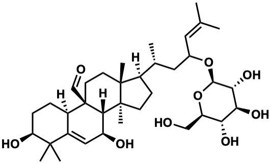 InChI=1S/C36H58O9/c1-19(2)14-21(44-32-30(43)29(42)28(41)26(17-37)45-32)15-20(3)22-10-11-35(7)31-25(39)16-24-23(8-9-27(40)33(24,4)5)36(31,18-38)13-12-34(22,35)6/h14,16,18,20-23,25-32,37,39-43H,8-13,15,17H2,1-7H3/t20-,21?,22-,23-,25+,26-,27+,28-,29+,30-,31+,32-,34-,35+,36-/m1/s1 |