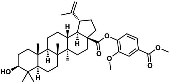 InChI=1S/C39H56O6/c1-23(2)25-14-19-39(34(42)45-27-12-10-24(33(41)44-9)22-28(27)43-8)21-20-37(6)26(32(25)39)11-13-30-36(5)17-16-31(40)35(3,4)29(36)15-18-38(30,37)7/h10,12,22,25-26,29-32,40H,1,11,13-21H2,2-9H3/t25-,26+,29-,30+,31-,32+,36-,37+,38+,39-/m0/s1 |