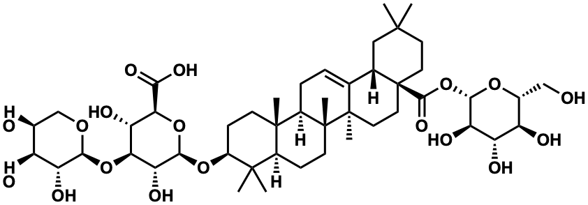 InChI=1S/C47H74O18/c1-42(2)14-16-47(41(59)65-39-32(54)30(52)29(51)24(19-48)61-39)17-15-45(6)21(22(47)18-42)8-9-26-44(5)12-11-27(43(3,4)25(44)10-13-46(26,45)7)62-40-34(56)35(33(55)36(64-40)37(57)58)63-38-31(53)28(50)23(49)20-60-38/h8,22-36,38-40,48-56H,9-20H2,1-7H3,(H,57,58)/t22-,23-,24+,25-,26+,27-,28-,29+,30-,31+,32+,33-,34+,35-,36-,38-,39-,40+,44-,45+,46+,47-/m0/s1 |