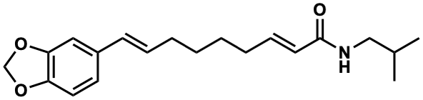 CC(C)CNC(=O)/C=C/CCCC/C=C/c1ccc2c(c1)OCO2 |