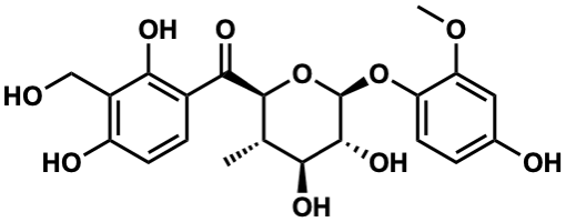 COc1cc(O)ccc1O[C@@H]1O[C@H](C(=O)c2ccc(O)c(CO)c2O)[C@@H](C)[C@H](O)[C@H]1O |