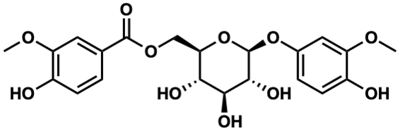 InChI=1S/C21H24O11/c1-28-14-7-10(3-5-12(14)22)20(27)30-9-16-17(24)18(25)19(26)21(32-16)31-11-4-6-13(23)15(8-11)29-2/h3-8,16-19,21-26H,9H2,1-2H3/t16-,17-,18+,19-,21-/m1/s1 |