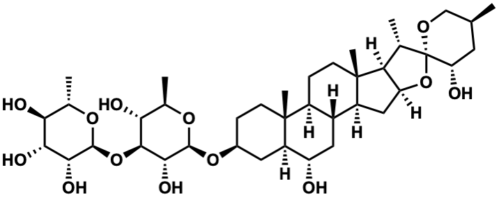 InChI=1S/C39H64O13/c1-16-11-27(41)39(47-15-16)17(2)28-26(52-39)14-23-21-13-25(40)24-12-20(7-9-37(24,5)22(21)8-10-38(23,28)6)50-36-33(46)34(30(43)19(4)49-36)51-35-32(45)31(44)29(42)18(3)48-35/h16-36,40-46H,7-15H2,1-6H3/t16-,17-,18-,19+,20-,21+,22-,23-,24+,25-,26-,27-,28-,29-,30+,31+,32+,33+,34-,35-,36-,37+,38-,39-/m0/s1 |