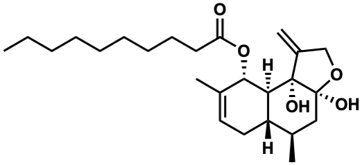InChI=1S/C25H40O5/c1-5-6-7-8-9-10-11-12-21(26)30-23-17(2)13-14-20-18(3)15-24(27)25(28,22(20)23)19(4)16-29-24/h13,18,20,22-23,27-28H,4-12,14-16H2,1-3H3/t18-,20+,22+,23+,24+,25+/m1/s1 |