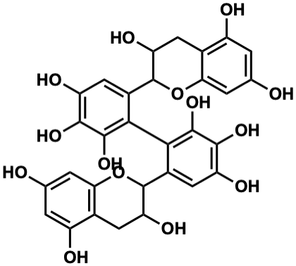 InChI=1S/C30H26O14/c31-9-1-15(33)11-5-19(37)29(43-21(11)3-9)13-7-17(35)25(39)27(41)23(13)24-14(8-18(36)26(40)28(24)42)30-20(38)6-12-16(34)2-10(32)4-22(12)44-30/h1-4,7-8,19-20,29-42H,5-6H2 |
