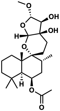 InChI=1S/C23H38O7/c1-13-12-15(28-14(2)24)16-20(3,4)8-7-9-21(16,5)23(13)11-10-22(26)17(25)18(27-6)29-19(22)30-23/h13,15-19,25-26H,7-12H2,1-6H3/t13-,15-,16+,17-,18+,19+,21+,22-,23-/m1/s1 |