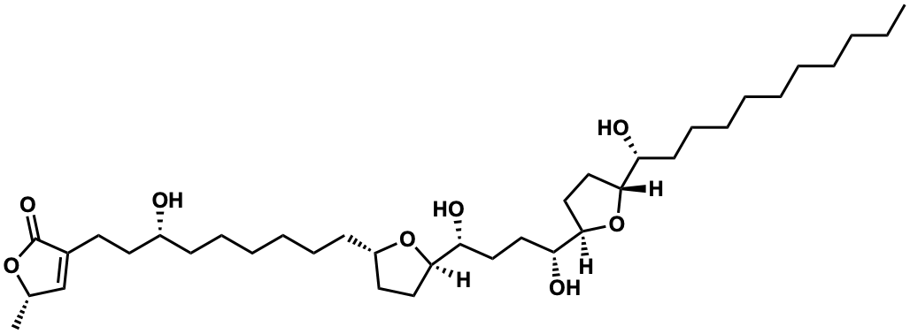 InChI=1S/C37H66O8/c1-3-4-5-6-7-8-9-14-17-31(39)35-24-25-36(45-35)33(41)22-21-32(40)34-23-20-30(44-34)16-13-11-10-12-15-29(38)19-18-28-26-27(2)43-37(28)42/h26-27,29-36,38-41H,3-25H2,1-2H3/t27-,29+,30-,31+,32+,33+,34+,35+,36+/m0/s1 |