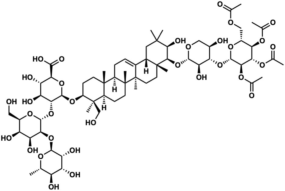 InChI=1S/C67H104O32/c1-26-39(75)41(77)45(81)58(88-26)97-50-42(78)40(76)34(22-68)92-59(50)98-51-44(80)43(79)49(56(84)85)96-60(51)94-38-16-17-64(9)36(65(38,10)25-69)15-18-67(12)37(64)14-13-31-32-21-62(6,7)54(83)55(63(32,8)19-20-66(31,67)11)99-57-46(82)47(33(74)23-87-57)95-61-53(91-30(5)73)52(90-29(4)72)48(89-28(3)71)35(93-61)24-86-27(2)70/h13,26,32-55,57-61,68-69,74-83H,14-25H2,1-12H3,(H,84,85)/t26-,32-,33+,34+,35+,36+,37+,38-,39-,40-,41+,42-,43-,44-,45+,46+,47-,48+,49-,50-,51+,52-,53+,54-,55+,57-,58-,59+,60+,61-,63+,64-,65+,66+,67+/m0/s1 |
