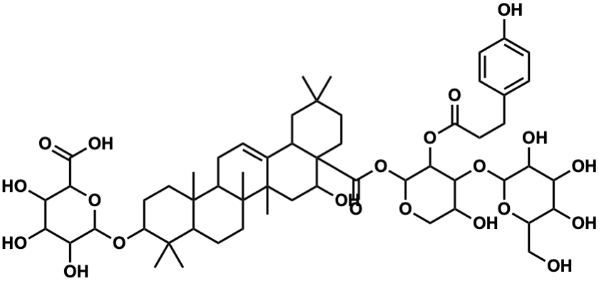 InChI=1S/C56H82O21/c1-51(2)20-21-56(50(70)77-49-45(74-36(61)15-10-26-8-11-27(58)12-9-26)43(30(59)25-71-49)75-47-41(66)38(63)37(62)31(24-57)72-47)29(22-51)28-13-14-33-53(5)18-17-35(73-48-42(67)39(64)40(65)44(76-48)46(68)69)52(3,4)32(53)16-19-54(33,6)55(28,7)23-34(56)60/h8-9,11-13,29-35,37-45,47-49,57-60,62-67H,10,14-25H2,1-7H3,(H,68,69) |