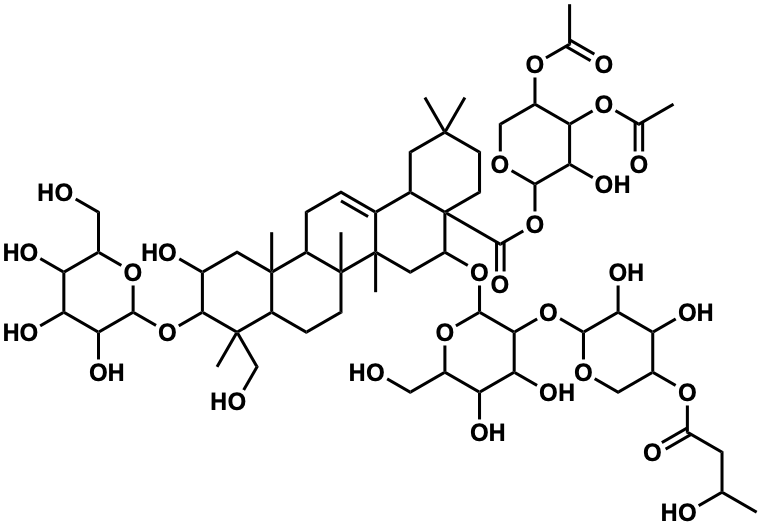 InChI=1S/C60H94O28/c1-25(64)16-38(68)82-33-22-78-50(44(74)41(33)71)86-48-43(73)40(70)32(21-62)84-53(48)85-37-19-59(9)28(29-17-55(4,5)14-15-60(29,37)54(77)88-51-46(76)47(81-27(3)66)34(23-79-51)80-26(2)65)10-11-36-56(6)18-30(67)49(57(7,24-63)35(56)12-13-58(36,59)8)87-52-45(75)42(72)39(69)31(20-61)83-52/h10,25,29-37,39-53,61-64,67,69-76H,11-24H2,1-9H3 |