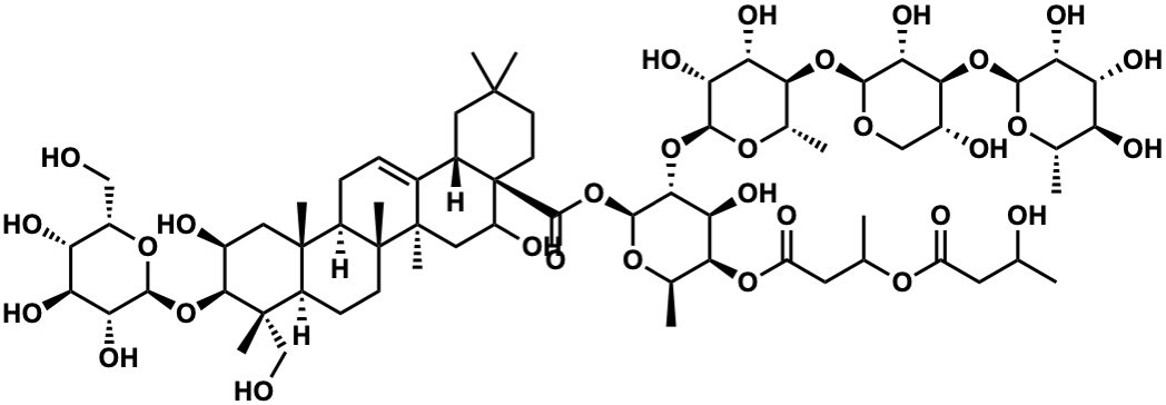 InChI=1S/C67H108O31/c1-26(70)18-39(74)88-27(2)19-40(75)93-52-30(5)91-60(54(49(52)84)96-58-48(83)45(80)51(29(4)90-58)94-56-50(85)53(34(72)24-87-56)95-57-46(81)43(78)41(76)28(3)89-57)98-61(86)67-17-16-62(6,7)20-32(67)31-12-13-37-63(8)21-33(71)55(97-59-47(82)44(79)42(77)35(23-68)92-59)64(9,25-69)36(63)14-15-65(37,10)66(31,11)22-38(67)73/h12,26-30,32-38,41-60,68-73,76-85H,13-25H2,1-11H3/t26?,27?,28-,29-,30+,32-,33-,34+,35-,36+,37+,38?,41-,42+,43+,44-,45-,46+,47+,48+,49-,50+,51-,52-,53-,54+,55-,56-,57-,58-,59-,60-,63-,64-,65+,66+,67+/m0/s1 |