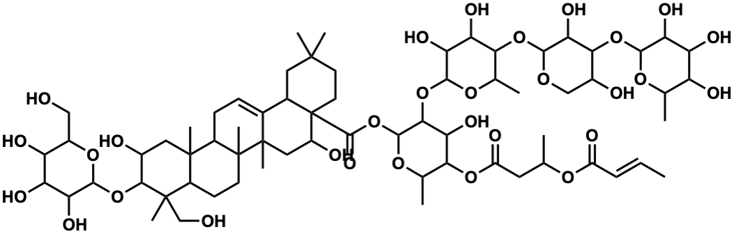InChI=1S/C67H106O30/c1-12-13-39(73)87-27(2)20-40(74)92-52-30(5)90-60(54(49(52)83)95-58-48(82)45(79)51(29(4)89-58)93-56-50(84)53(34(71)25-86-56)94-57-46(80)43(77)41(75)28(3)88-57)97-61(85)67-19-18-62(6,7)21-32(67)31-14-15-37-63(8)22-33(70)55(96-59-47(81)44(78)42(76)35(24-68)91-59)64(9,26-69)36(63)16-17-65(37,10)66(31,11)23-38(67)72/h12-14,27-30,32-38,41-60,68-72,75-84H,15-26H2,1-11H3/b13-12+ |