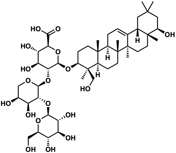 InChI=1S/C47H76O18/c1-42(2)16-22-21-8-9-26-44(4)12-11-28(45(5,20-49)25(44)10-13-47(26,7)46(21,6)15-14-43(22,3)27(51)17-42)62-41-37(33(56)32(55)35(63-41)38(58)59)65-40-36(29(52)23(50)19-60-40)64-39-34(57)31(54)30(53)24(18-48)61-39/h8,22-37,39-41,48-57H,9-20H2,1-7H3,(H,58,59)/t22-,23-,24+,25+,26+,27+,28-,29-,30+,31-,32-,33-,34+,35-,36+,37+,39-,40-,41+,43+,44-,45+,46+,47+/m0/s1 |