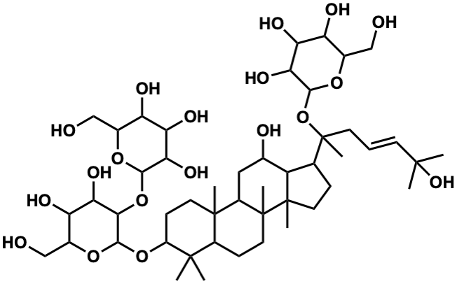 InChI=1S/C48H82O19/c1-43(2,61)13-9-14-48(8,67-41-38(60)35(57)32(54)25(20-50)63-41)22-10-16-47(7)30(22)23(52)18-28-45(5)15-12-29(44(3,4)27(45)11-17-46(28,47)6)65-42-39(36(58)33(55)26(21-51)64-42)66-40-37(59)34(56)31(53)24(19-49)62-40/h9,13,22-42,49-61H,10-12,14-21H2,1-8H3/b13-9+ |