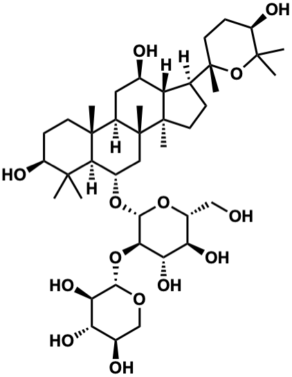 InChI=1S/C41H70O14/c1-36(2)25(45)10-12-38(5)24-15-20(43)27-19(41(8)14-11-26(46)37(3,4)55-41)9-13-39(27,6)40(24,7)16-22(33(36)38)52-35-32(30(49)29(48)23(17-42)53-35)54-34-31(50)28(47)21(44)18-51-34/h19-35,42-50H,9-18H2,1-8H3/t19-,20+,21+,22-,23+,24+,25-,26+,27-,28-,29+,30-,31+,32+,33-,34-,35+,38+,39+,40+,41-/m0/s1 |