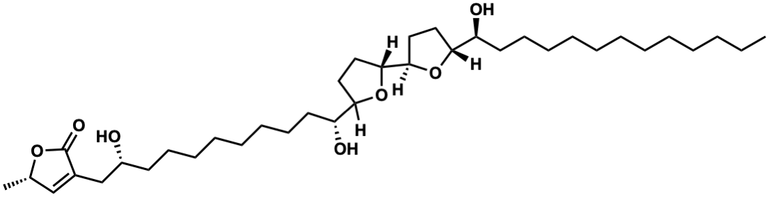 InChI=1S/C37H66O7/c1-3-4-5-6-7-8-9-10-14-17-20-31(39)33-22-24-35(43-33)36-25-23-34(44-36)32(40)21-18-15-12-11-13-16-19-30(38)27-29-26-28(2)42-37(29)41/h26,28,30-36,38-40H,3-25,27H2,1-2H3/t28-,30+,31-,32+,33+,34?,35+,36+/m0/s1 |