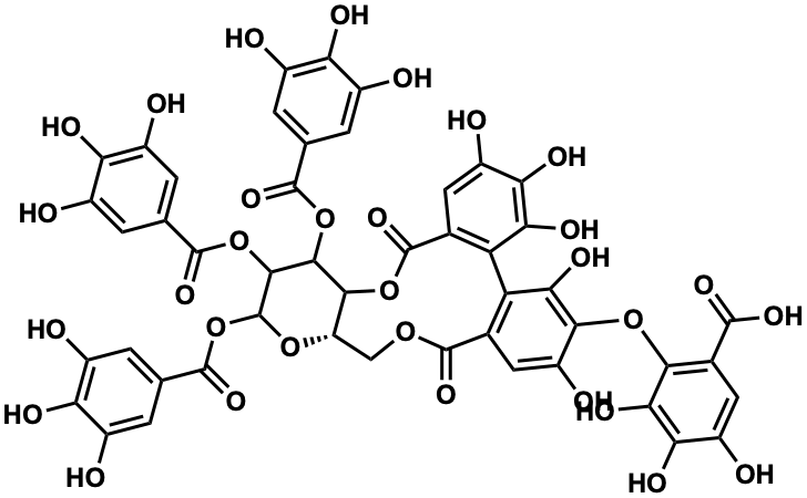 InChI=1S/C48H34O31/c49-17-1-11(2-18(50)29(17)58)43(68)77-40-39-26(74-48(79-45(70)13-5-21(53)31(60)22(54)6-13)41(40)78-44(69)12-3-19(51)30(59)20(52)4-12)10-73-46(71)14-8-25(57)38(75-37-16(42(66)67)9-24(56)33(62)36(37)65)35(64)28(14)27-15(47(72)76-39)7-23(55)32(61)34(27)63/h1-9,26,39-41,48-65H,10H2,(H,66,67)/t26-,39?,40?,41?,48?/m0/s1 |