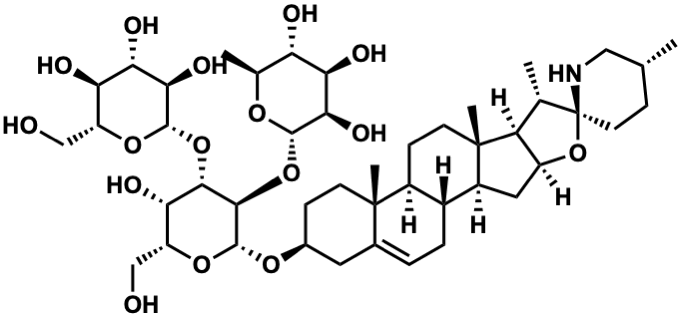 InChI=1S/C45H73NO16/c1-19-8-13-45(46-16-19)20(2)30-27(62-45)15-26-24-7-6-22-14-23(9-11-43(22,4)25(24)10-12-44(26,30)5)57-42-39(61-40-36(54)34(52)31(49)21(3)56-40)38(33(51)29(18-48)59-42)60-41-37(55)35(53)32(50)28(17-47)58-41/h6,19-21,23-42,46-55H,7-18H2,1-5H3/t19-,20+,21+,23+,24-,25+,26+,27+,28-,29-,30+,31+,32-,33+,34-,35+,36-,37-,38+,39-,40+,41+,42-,43+,44+,45+/m1/s1 |