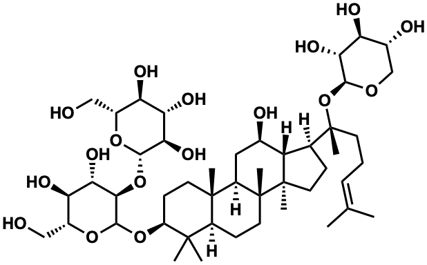 InChI=1S/C47H80O17/c1-22(2)10-9-14-47(8,64-40-37(57)32(52)25(51)21-59-40)23-11-16-46(7)31(23)24(50)18-29-44(5)15-13-30(43(3,4)28(44)12-17-45(29,46)6)62-42-39(36(56)34(54)27(20-49)61-42)63-41-38(58)35(55)33(53)26(19-48)60-41/h10,23-42,48-58H,9,11-21H2,1-8H3/t23-,24+,25+,26+,27+,28-,29+,30-,31-,32-,33+,34+,35-,36-,37+,38+,39+,40-,41-,42?,44-,45+,46+,47+/m0/s1 |