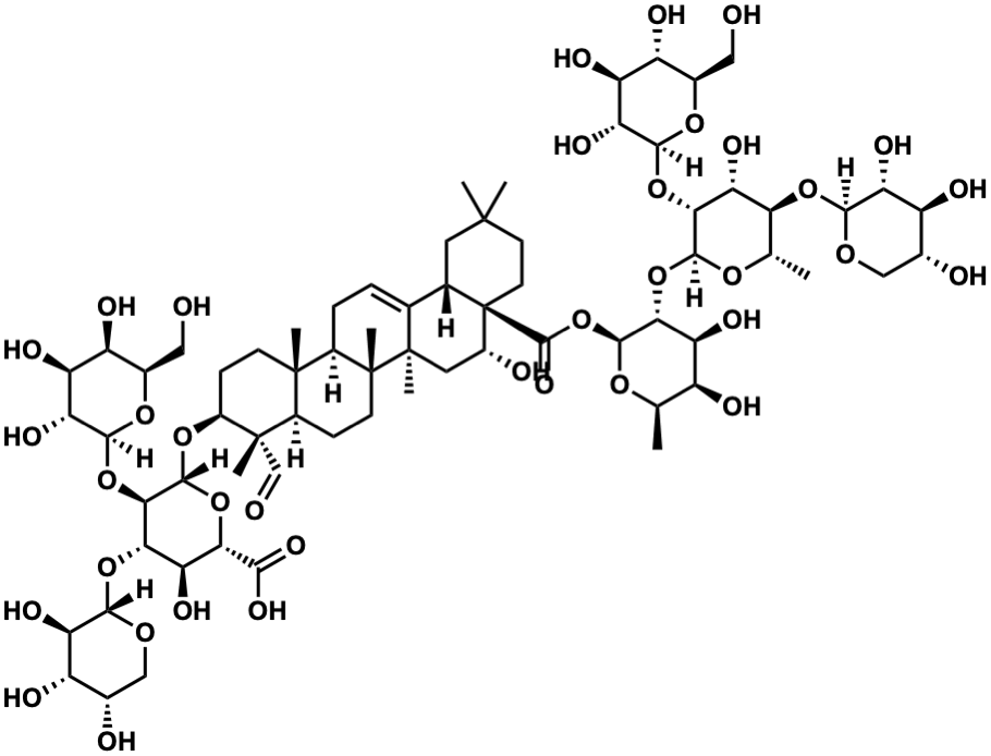 InChI=1S/C70H110O37/c1-24-36(77)43(84)53(105-61-54(104-59-46(87)41(82)39(80)30(19-71)98-59)48(89)50(25(2)97-61)101-57-44(85)37(78)28(74)21-94-57)62(96-24)107-64(93)70-16-15-65(3,4)17-27(70)26-9-10-33-66(5)13-12-35(67(6,23-73)32(66)11-14-68(33,7)69(26,8)18-34(70)76)100-63-55(106-60-47(88)42(83)40(81)31(20-72)99-60)51(49(90)52(103-63)56(91)92)102-58-45(86)38(79)29(75)22-95-58/h9,23-25,27-55,57-63,71-72,74-90H,10-22H2,1-8H3,(H,91,92)/t24-,25+,27+,28-,29+,30-,31-,32-,33-,34-,35+,36+,37+,38+,39-,40+,41+,42+,43+,44-,45-,46-,47-,48-,49+,50+,51+,52+,53-,54-,55-,57+,58+,59+,60+,61+,62+,63-,66+,67+,68-,69-,70-/m1/s1 |