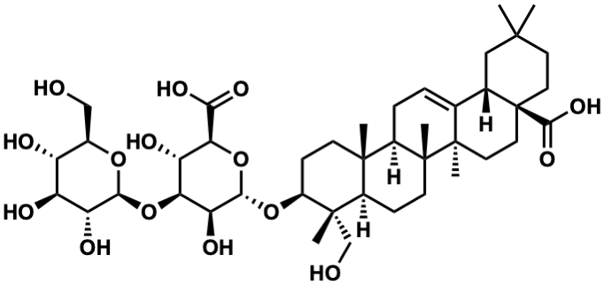 InChI=1S/C42H66O15/c1-37(2)13-15-42(36(52)53)16-14-40(5)20(21(42)17-37)7-8-24-38(3)11-10-25(39(4,19-44)23(38)9-12-41(24,40)6)55-35-30(49)31(29(48)32(57-35)33(50)51)56-34-28(47)27(46)26(45)22(18-43)54-34/h7,21-32,34-35,43-49H,8-19H2,1-6H3,(H,50,51)(H,52,53)/t21-,22+,23+,24+,25-,26+,27-,28+,29-,30-,31-,32-,34-,35-,38-,39-,40+,41+,42-/m0/s1 |
