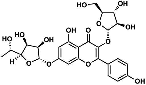 C[C@H](O)[C@@H]1O[C@@H](Oc2cc(O)c3c(=O)c(O[C@@H]4O[C@@H](CO)[C@H](O)[C@H]4O)c(-c4ccc(O)cc4)oc3c2)[C@H](O)[C@@H]1O |