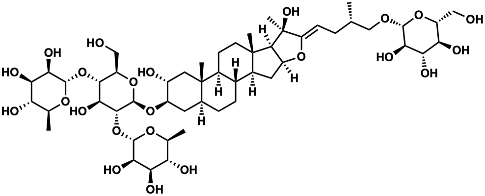 InChI=1S/C51H84O23/c1-19(18-66-45-38(61)37(60)34(57)29(16-52)71-45)7-10-31-51(6,65)44-28(69-31)14-25-23-9-8-22-13-27(26(54)15-50(22,5)24(23)11-12-49(25,44)4)70-48-43(74-47-40(63)36(59)33(56)21(3)68-47)41(64)42(30(17-53)72-48)73-46-39(62)35(58)32(55)20(2)67-46/h10,19-30,32-48,52-65H,7-9,11-18H2,1-6H3/b31-10-/t19-,20-,21-,22-,23+,24-,25-,26+,27+,28-,29+,30+,32-,33-,34+,35+,36+,37-,38+,39+,40+,41-,42+,43+,44-,45+,46-,47-,48+,49-,50-,51-/m0/s1 |
