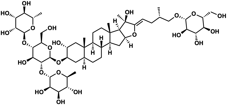 InChI=1S/C51H84O23/c1-19(18-66-45-38(61)37(60)34(57)29(16-52)71-45)7-10-31-51(6,65)44-28(69-31)14-25-23-9-8-22-13-27(26(54)15-50(22,5)24(23)11-12-49(25,44)4)70-48-43(74-47-40(63)36(59)33(56)21(3)68-47)41(64)42(30(17-53)72-48)73-46-39(62)35(58)32(55)20(2)67-46/h10,19-30,32-48,52-65H,7-9,11-18H2,1-6H3/b31-10-/t19-,20-,21-,22-,23+,24-,25-,26+,27+,28-,29+,30+,32-,33-,34+,35+,36+,37-,38+,39+,40+,41-,42+,43+,44-,45+,46-,47-,48+,49-,50-,51-/m0/s1 |